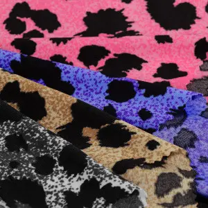 Leopard pattern on soft and silky interlock fabric is suitable for warm weather due to its breathable structure. Perfect for clothing and activewear.